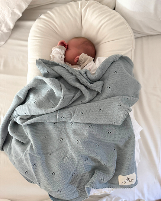 Soft Knitted Cuff Newborn Beanie - Baby Blue