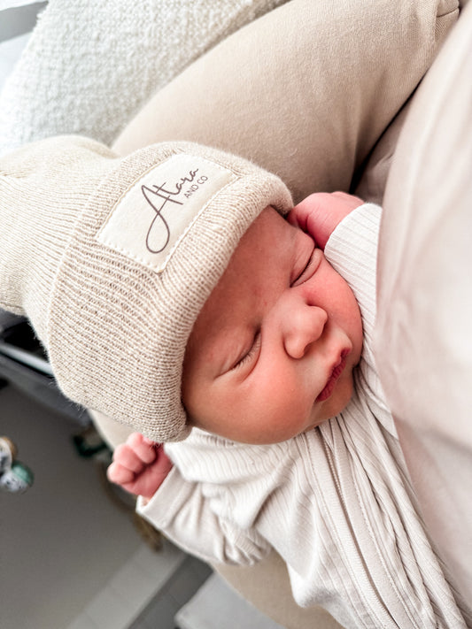 Soft Knitted Cuff Newborn Beanie - Taupe
