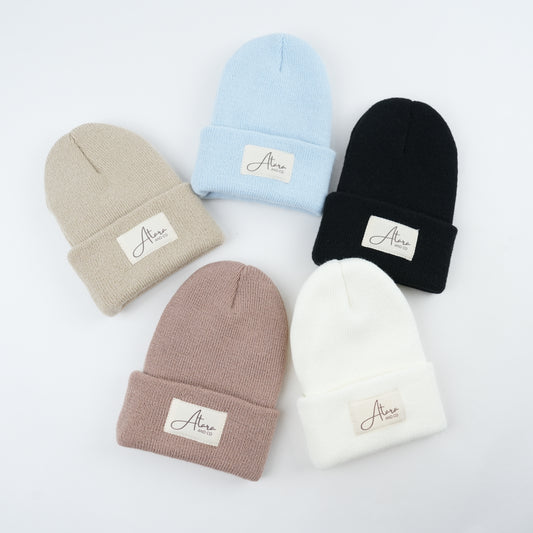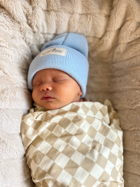 Soft Knitted Cuff Newborn Beanie - Baby Blue