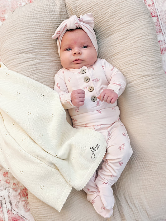 Sold outMebie Baby Plush Blanket - Pink Bow