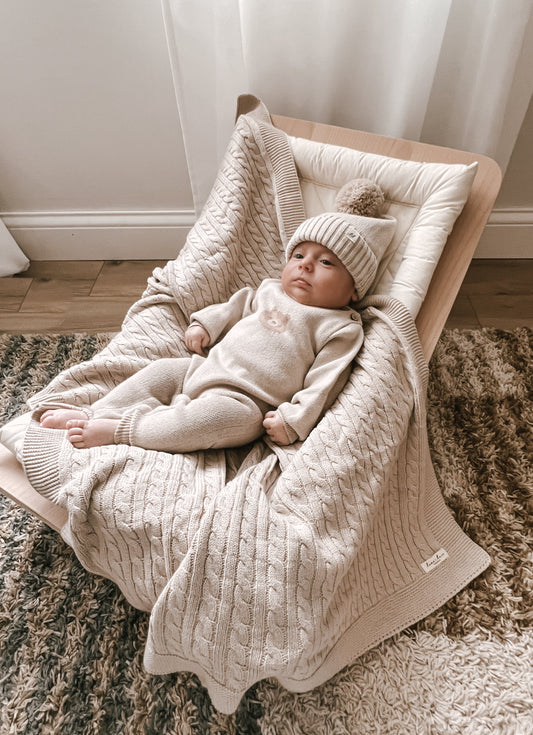 Luna + Luca Cable Knit Baby Blanket - Beige