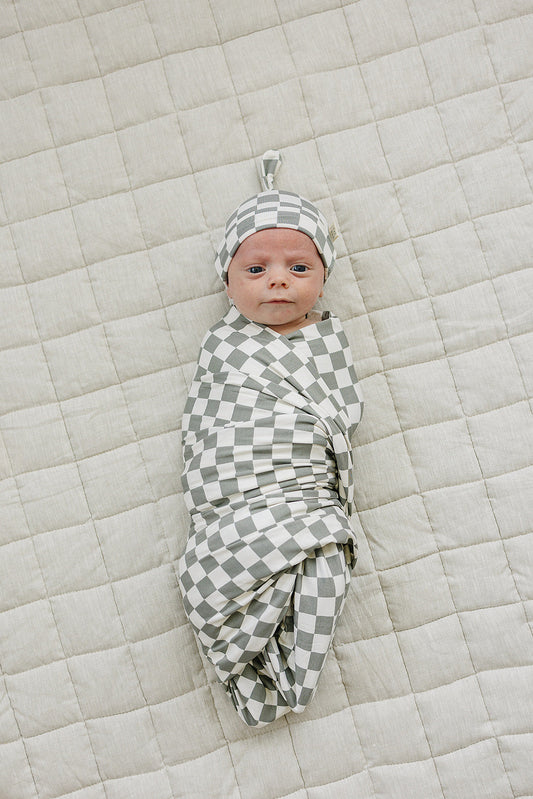 Mebie Baby Bamboo Stretch Swaddle - Light Green Checkered