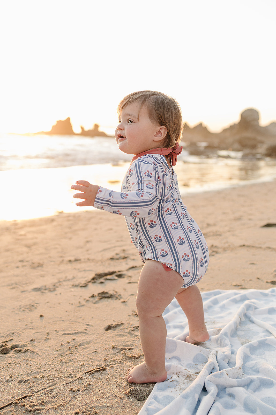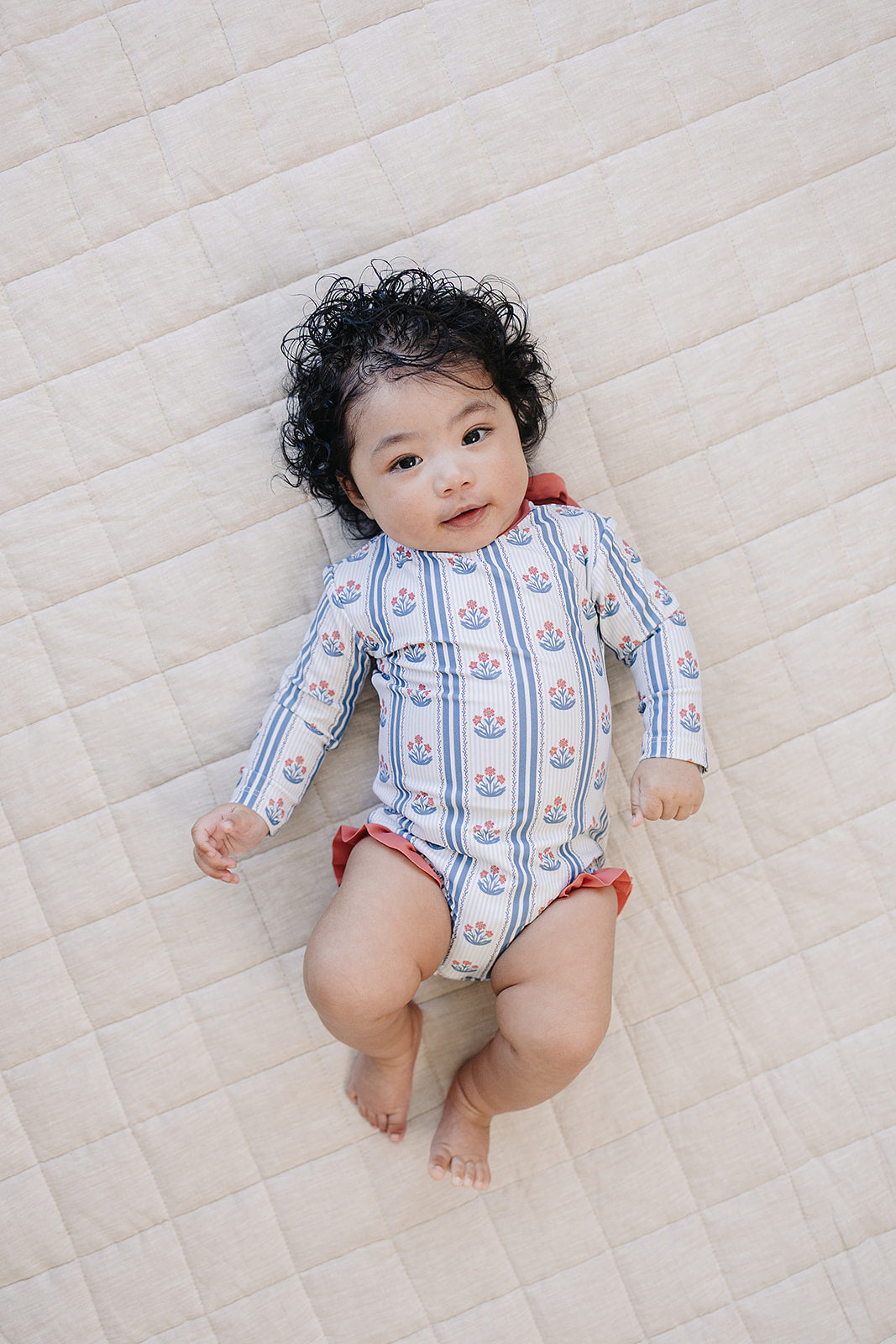 Our Block Print Floral One-Piece is a dreamy blend of vintage charm and swim-ready style. Featuring a delicate block print floral, this suit feels heirloom-inspired while still being perfect for all their splash-filled adventures.