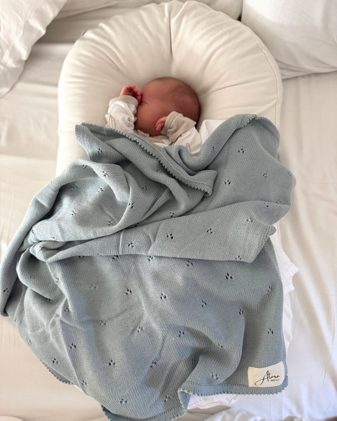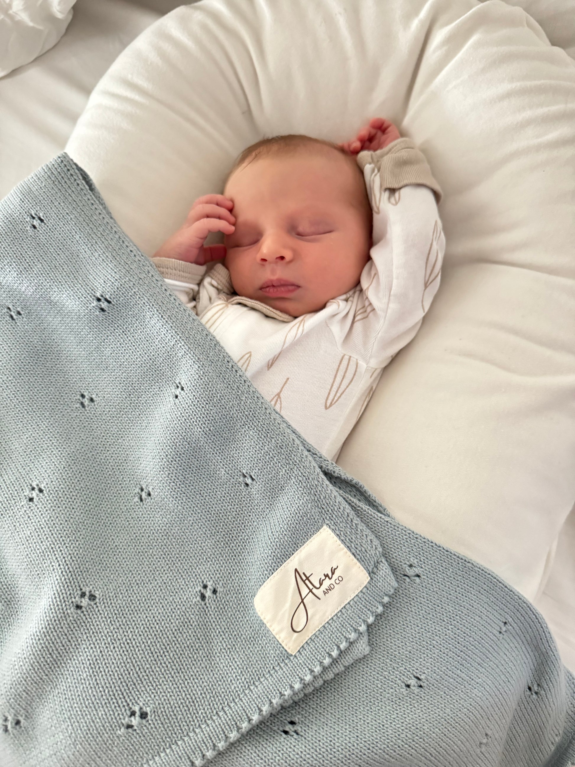 Our Pointelle Knit Baby Blanket is a must have staple for your baby's nursery. It's made from super soft lightweight fabric that will keep your baby warm & cozy throughout the day. It comes in a beautiful pointelle knit design & is generously sized for both newborns & infants.