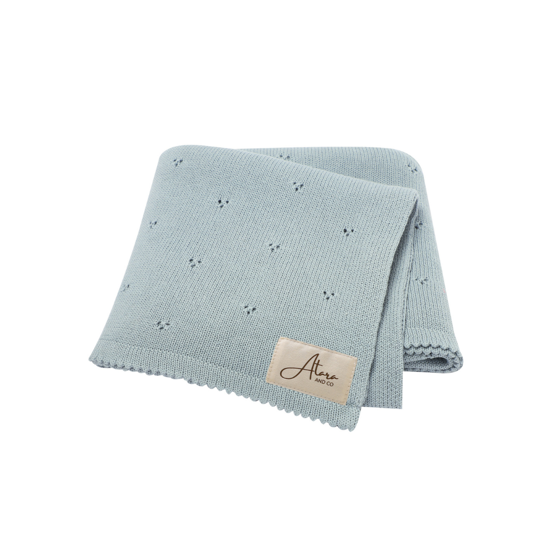 Pointelle Knit Baby Blanket - Dusty Blue
