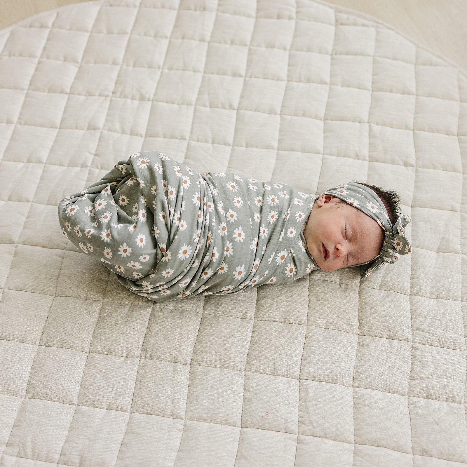 Mebie Baby Light Green Daisy Bamboo Swaddle