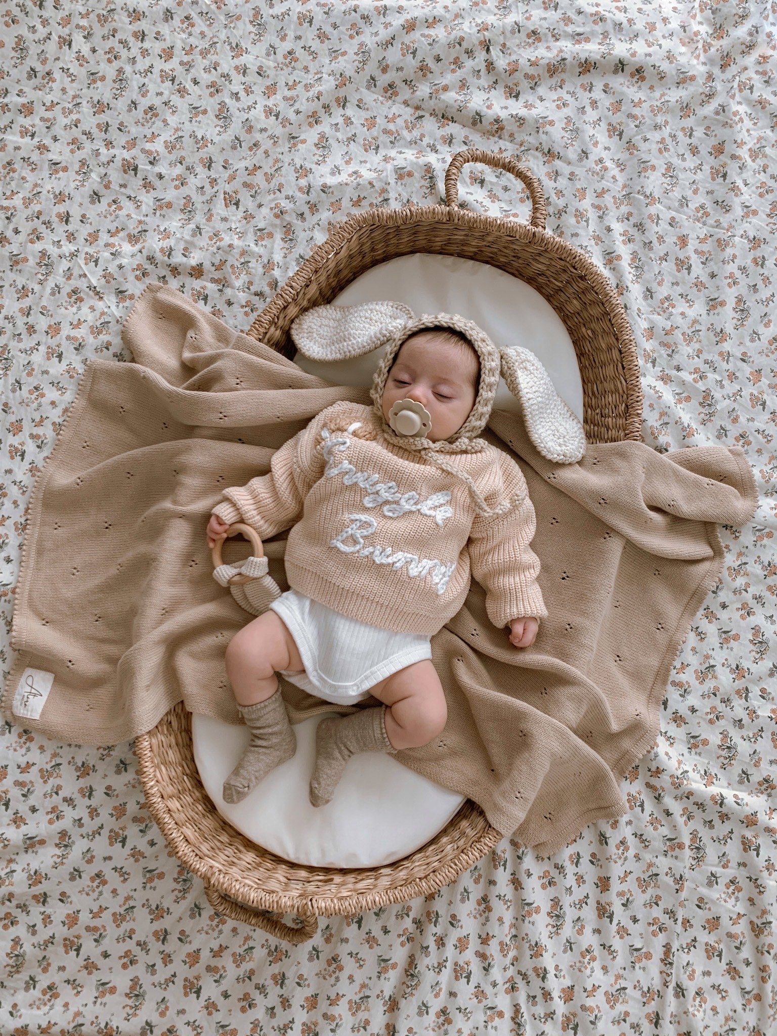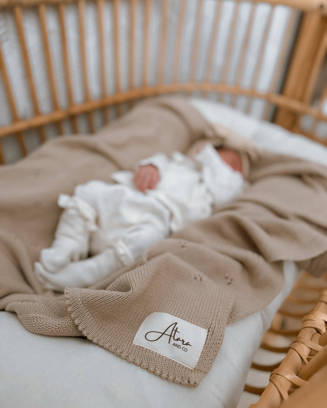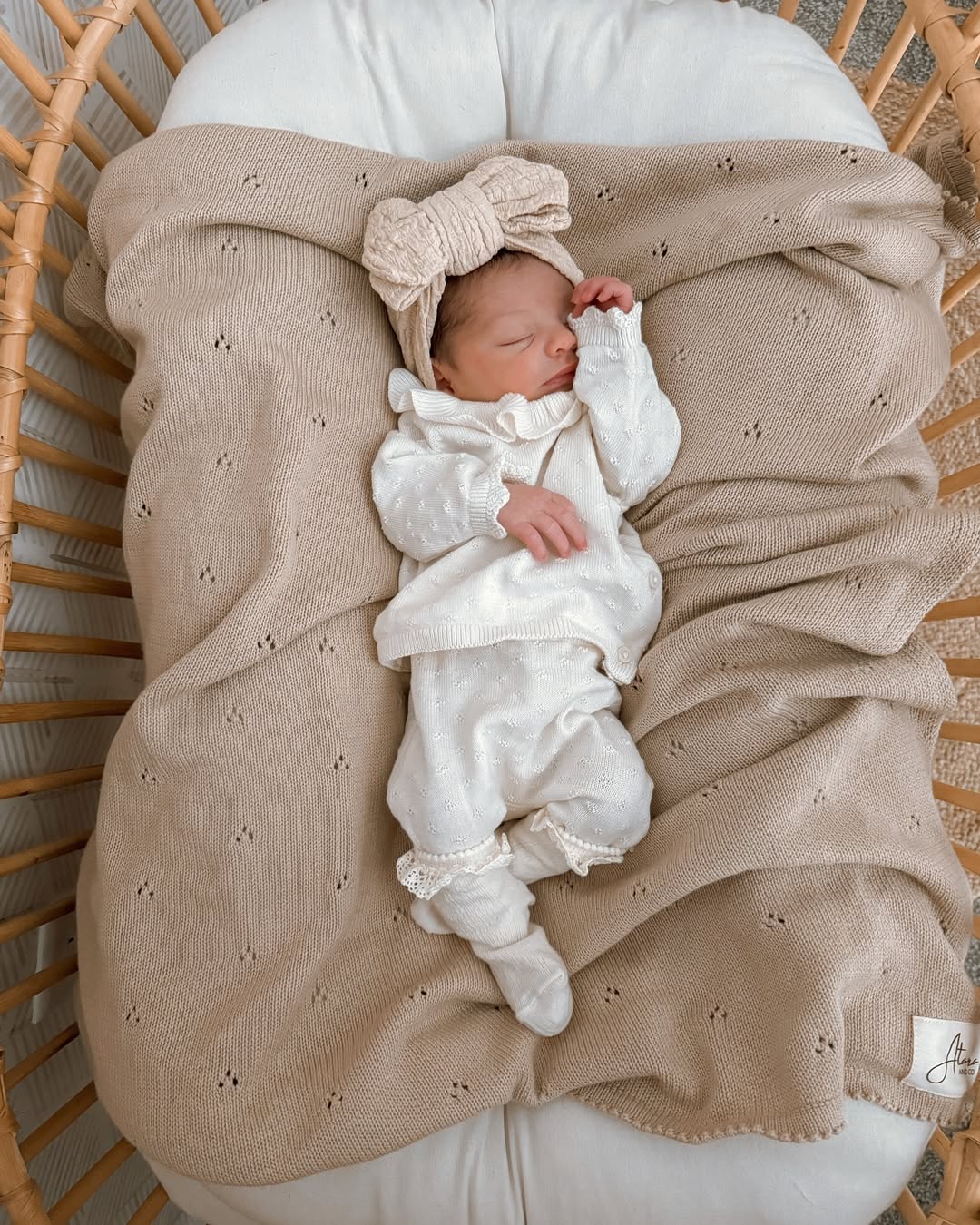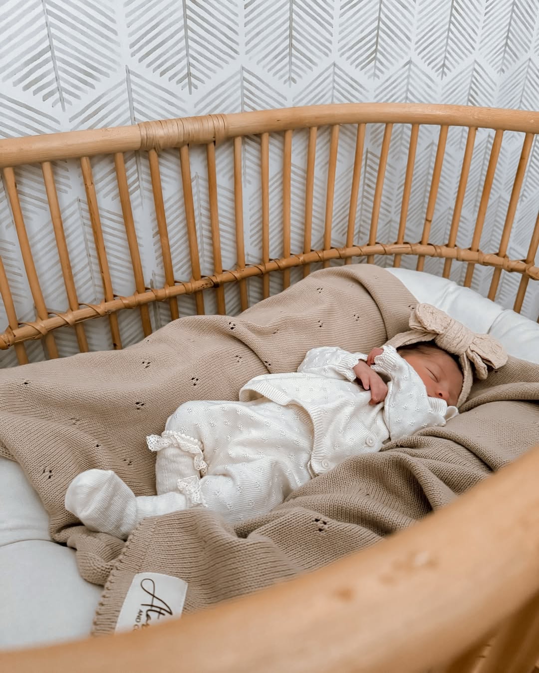 Our Pointelle Knit Baby Blanket is a must have staple for your baby's nursery. It's made from super soft lightweight fabric that will keep your baby warm & cozy throughout the day. It comes in a beautiful pointelle knit design & is generously sized for both newborns & infants.
