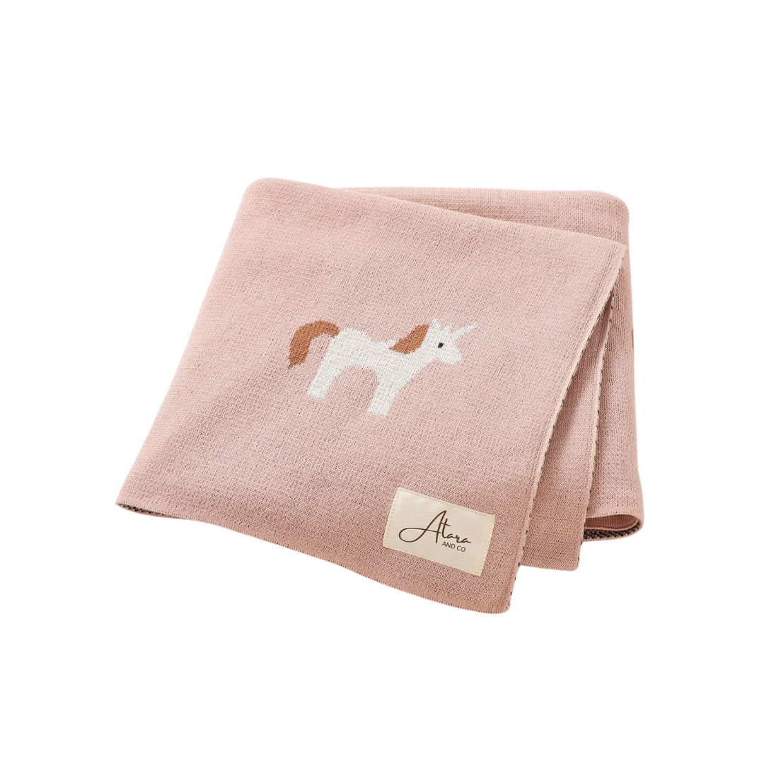 Our Soft Knitted Baby Blanket is a must have staple for your baby's nursery. It's made from a soft lightweight material that will keep your baby warm & cozy throughout the day. This blanket comes in a beautiful unicorn patterned design & is generously sized for both newborns & infants.