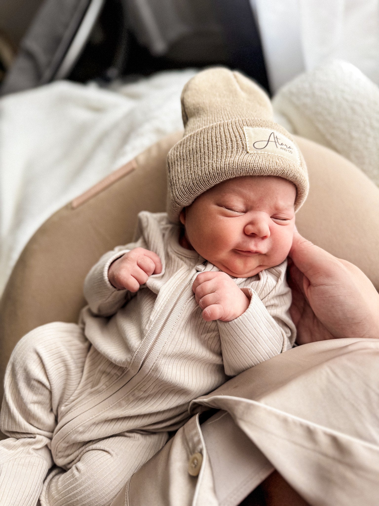 Soft Knitted Cuff Newborn Beanie - Beige