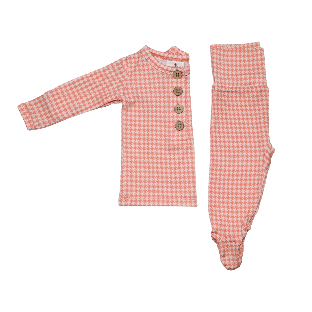 Top + Bottoms Set - Pink Houndstooth